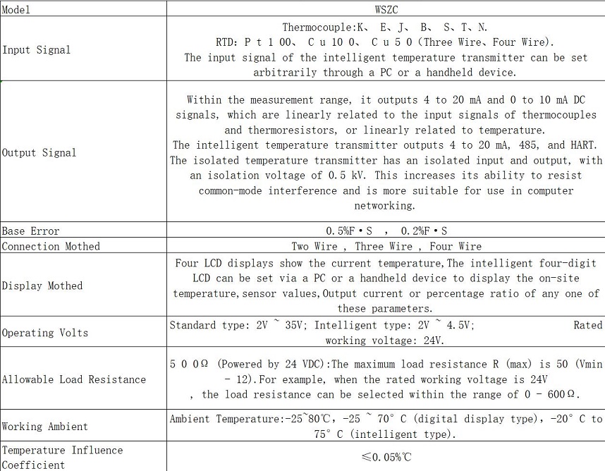 The integrated temperature transmitter is composed of a temperature transducer module and industrial thermocouples or thermoresistors. It adopts two-wire, three-wire and four-wire transmission methods. It converts industrial thermocouple and resistance signals into linear 4-20mA or 0-10mA output signals.This transmitter can be directly installed in the junction box of thermocouples or thermoresistors to form an integrated structure. As a new generation of temperature measuring instrument, it can be widely applied in industrial sectors such as metallurgy, petroleum, chemical industry, power, light industry, textile, food, national defense and scientific research.