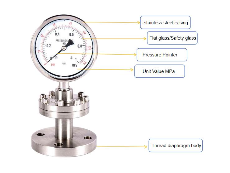 In the food, beverage, pharmaceutical and bioengineering industries, these types of pressure gauges are commonly referred to as "hygienic diaphragm pressure gauges" or "sterile diaphragm pressure gauges".